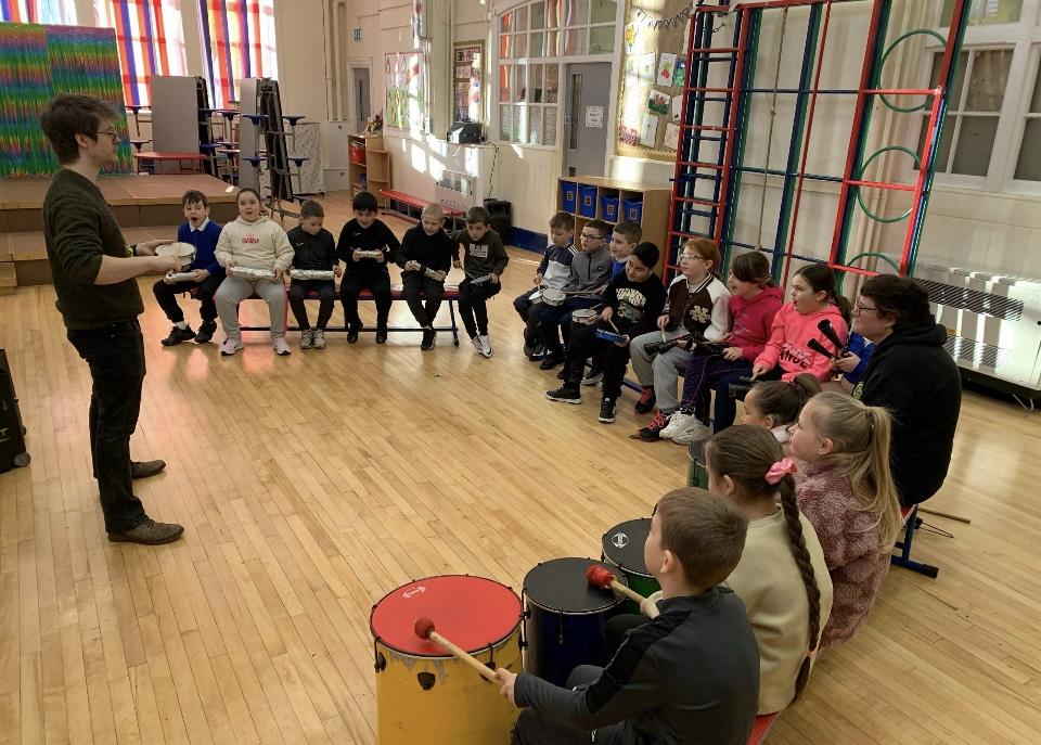 We are having a drum workshop every week with UPBEATS, it is great fun! We even made our own shakers at home!